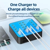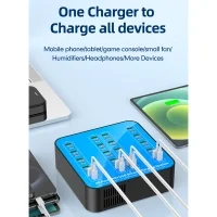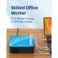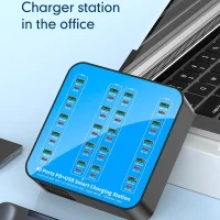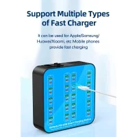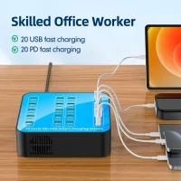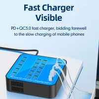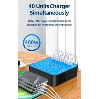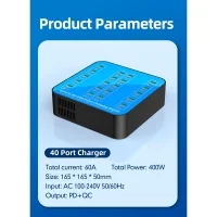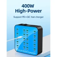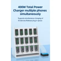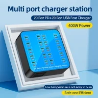 Equipped with 20 PD (Power Delivery) and 20 QC (Quick Charge) ports, it provides a total power output of 400W, capable of delivering up to 100W per port. Designed to support Apple, Samsung, Huawei, Xiaomi, and most other PD/QC-compatible devices.