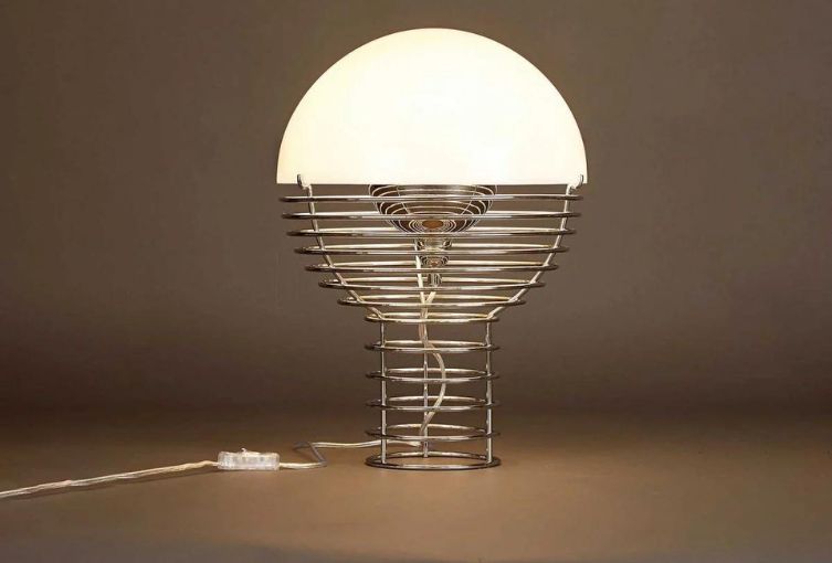 Verpan's Wire lamps are not just functional objects, but true works of design art. Their chromed metal wire structure and plastic hemisphere represent a perfect example of how aesthetics and functionality can harmoniously integrate.