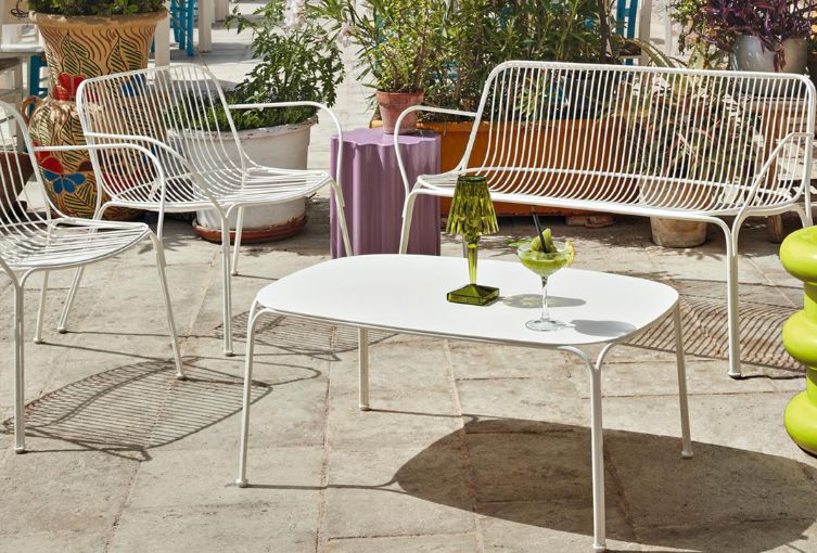 The Hiray collection is made of metal worked with the welded wire technique, a method that gives the furnishings exceptional strength and durability. This material, in addition to guaranteeing a long life for furnishings, allows you to create light and airy shapes that contribute to a refined and contemporary aesthetic. Hiray is also available in four elegant colors: white, black, rust and green, which integrate perfectly into any design context.