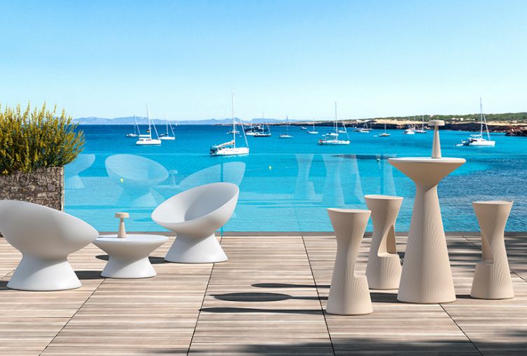 The Fade Table is ideal combined with the stool from the collection and is perfect for creating multiple relaxation context or where you can have an aperitif. Thanks to the polyethylene material you can place it under porches, on large terraces or even in the garden, always offering great versatility of use.