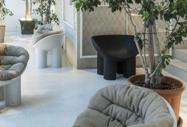 In fact, its round and compact shape makes it ideal to be placed on the Roly Poly armchair. You can find more details about the Roly Poly armchair here.