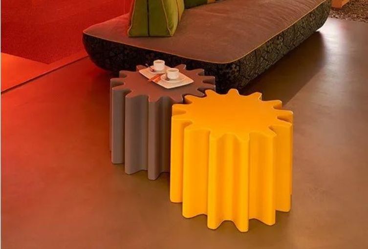 The versatility of Slide's pop tables is manifested in their creative positioning. A Toy coffee table can add a playful touch to a living room or be the ideal complement to a waiting room. The Together coffee tables can be arranged next to sofas, or under a porch in the garden, while the Gear vases, with their industrial design, integrate perfectly into modern and minimalist context.