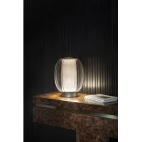 Alma transforms light into a poetic presence. Blown glass and a pleated fabric diffuser blend in pendants, table lamps, and floor lamps. Sculptural shapes and delicate colors give life to light, contemporary compositions, capable of redefining space with elegance and surprise, creating welcoming, refined environments with a distinctive character.