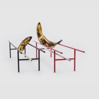 Designed by Ron Gilad for Danese Milano, Fruit Bowl No. 5.5 is an object that interprets the act of containing in a poetic and minimalist way. Three horizontal bars in painted and chrome-plated metal rest on two ramin wood trestles, creating a light and unstable composition that moves in perpetual balance. The design reflects Gilad's sensitivity to pure forms and the ambiguity between function and sculpture, resulting in an object that is both a container and an installation. Fruit Bowl No. 5.5 combines precision construction, irony, and discreet elegance, becoming a refined piece of furniture for contemporary environments.