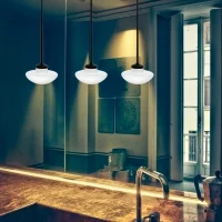 Available in two versions — with Ø 9 cm or Ø 12 cm diffuser — Sillaba lends itself to multiple configurations, whether as a single pendant or in clustered compositions above tables, counters, or worktops.