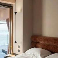 The Filomena collection by Karman combines minimalist design with maximum compositional versatility. This set consists of two Filomena pendant lights and a dedicated multiple ceiling rose, ideal for the bedroom. The configuration is designed to illuminate bedside tables: each pendant hangs down at the side of the bed, creating an intimate and refined light, perfect for reading or enhancing the space without cluttering it with classic table lamps. Thanks to its modular structure, you can adjust the distance and arrangement of the pendant lights according to your needs, customizing the composition and adapting it to the style of the room. With its clean lines and elegant finishes, Filomena transforms light into a real piece of furniture, making the bedroom cozy and refined.