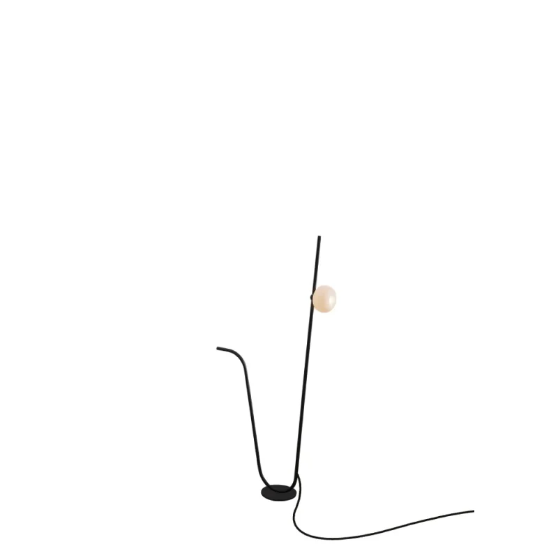Abachina, floor lamp with integrated LEDs for outdoor use. Minimal structure in aluminum with two spherical glass diffusers. Available in two sizes Small or Large and in two colors White or Black.
