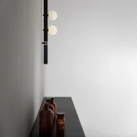 Stant, designed by Edmondo Testaguzza for Karman, is a modular track lighting system for wall or ceiling installation, designed to offer design flexibility and maximum lighting performance. Its minimalist and refined design makes it ideal for contemporary residential or professional environments, discreetly integrating into any architectural context. The matt black aluminum structure (also available in white) houses white satin-finish glass spheres that diffuse a soft, uniform light, creating welcoming and functional atmospheres. The system is equipped with high-efficiency 3000 K LED modules, capable of providing precise and comfortable lighting. Thanks to its modular nature and the possibility of customizing the arrangement of the spotlights, Stant adapts perfectly to a variety of design needs, making it ideal for lighting living areas, showrooms, retail spaces, and hospitality environments.