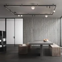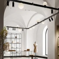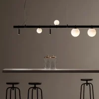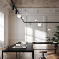 Stant Lineare, designed by Edmondo Testaguzza for Karman, is a refined suspension system designed for indoor lighting. Thanks to its minimalist aesthetics and clean lines, it blends harmoniously into different architectural contexts, offering versatile and high-performance lighting. The structure, made of matte black aluminum, houses white satin-finished glass spheres that diffuse a soft and uniform light, ideal for enhancing residential, retail, or hospitality environments. The system is equipped with high-efficiency LED modules with a color temperature of 3000 K, ensuring warm and welcoming lighting. Thanks to its modularity and the possibility of ceiling installation, Stant Lineare allows you to create customized compositions, adapting perfectly to different design and interior design needs.
