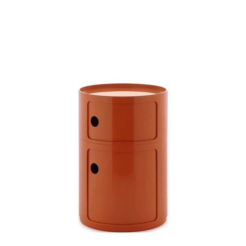Thanks to a new industrial mould, the 42 cm round version of Componibili reveals its quality and aesthetic appeal. The colour palette is enriched with the new 2025 finishes already available in the 32 cm version and the addition of new shades that combine contemporary spirit and historical references. Available in 2 or 3 elements configurations, the elements of the new version cannot be divided, but the wheel kit can be fitted. It can be used both indoors and outdoors.