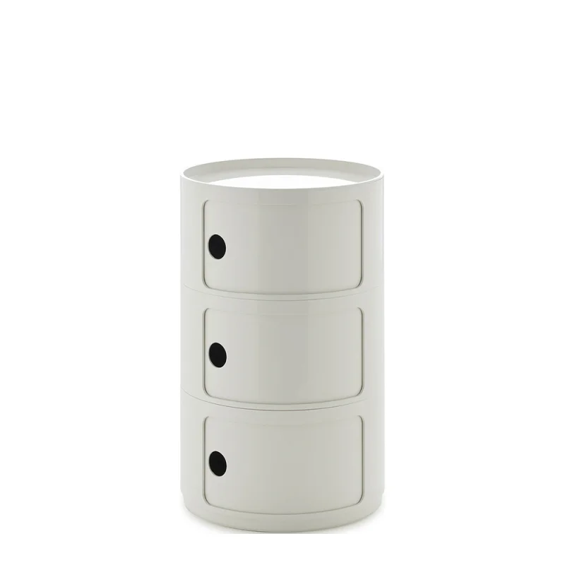 Componibili New Big, new version of the storage unit consisting of 2 or 3 elements, with sliding doors and a diameter of 42 cm. Suitable for indoor and outdoor use. Option to fit wheels.
