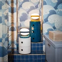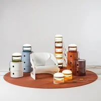 Joe Colombo's historic KD28 lamp, created in 1967, has been given a new lease of life, retaining its original innovative spirit while adapting to cutting-edge technological requirements and using recycled materials. The lampshade has a satin finish to emit a warm, enveloping light, with particular attention to details such as the electrical cable. The KD28 is also modular, allowing several lamps to be stacked on top of each other to create a bright, colourful totem.