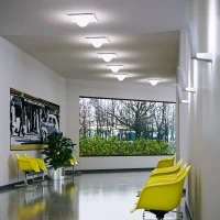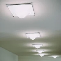 Bolla by Elio Martinelli for Martinelli Luce is a ceiling lamp that transforms light into living matter. Its essential and harmonious design evokes a bubble of light that seems to emerge from the ceiling, suspended in a perfect balance between lightness and tension. The gently curved surface suggests the presence of a thin material that stretches to contain the light itself, held only by the four spacers that anchor it to the sides of the base. The soft, diffused light that emanates from it envelops the room with a uniform and relaxing effect, ideal for creating welcoming and refined atmospheres. Bolla is a lamp that does not just illuminate, but becomes part of the architecture of the space: discreet, poetic, and perfectly balanced. Its pure form adapts to modern, residential, or professional contexts, bringing with it the unmistakable signature of Elio Martinelli and the timeless elegance of Italian design.