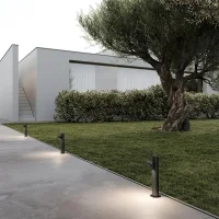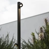 Jaco, designed by Edmondo Testaguzza for Karman, is an innovative architectural lighting system for outdoor use that interprets the concepts of modularity and flexibility with elegance and functionality. Designed to blend seamlessly with its surroundings, Jaco is ideal for gardens, avenues, terraces, and open-air spaces, where it camouflages itself among the greenery thanks to its compact size and refined mineral brown finish. The structure consists of cylindrical modules in anodized aluminum that act as light posts and can be stacked together to create custom configurations. Each module can accommodate one or more adjustable LED spotlights, which can be mounted either upwards or downwards, thus offering lighting tailored to every functional and aesthetic need. Jaco is not just a lighting fixture, but a true outdoor architectural element, designed to enhance paths, green areas, and outdoor spaces with precise lighting and minimalist design.