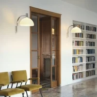 Designed in 1969 by Franco Albini, Franca Helg, Antonio Piva, and Marco Albini, the AM/AS collection expresses great attention to detail and the search for an ideal balance between functionality and form, enhancing the quality of the materials and the harmony of the space. AS3C is a wall lamp with a metal structure, available in chrome and black finishes, and a hand-blown glass diffuser that diffuses a soft, uniform light, creating a warm and welcoming atmosphere in any environment. Its clean lines and harmonious proportions allow it to blend perfectly into both residential and professional environments, offering aesthetic continuity and refined brightness. The AS3C lamp represents the essence of Albini's thinking: a light that furnishes with discretion, balance, and design intelligence.