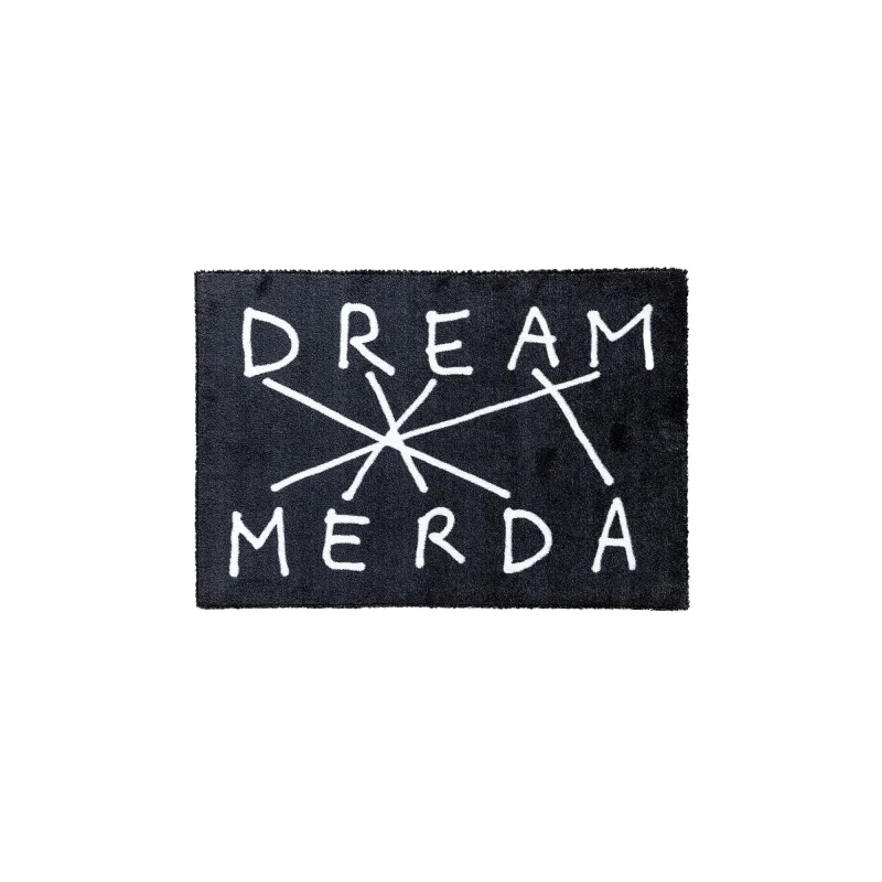 The Dream-Merda Collection, designed by Nico Vascellari, is the result of a collaboration between Seletti and the Codalunga art workshop. The encounter between contemporary art and radical design takes shape in a series of rugs that transform provocation into aesthetic language. Through minimalist graphics and a strong message, the rug conveys Vascellari's point of view: a subtle balance between art and everyday life. Made of polyester, with reinforced edges and a thickness of 1 cm. Easy to clean, designed exclusively for indoor use.