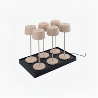 Pack of 6 rechargeable portable battery-powered lamps, Olivia model. Portable and rechargeable table lamp with an elegant and functional design. The practical touch control located on the top of the head allows you to turn on the lamp, adjust the light intensity, and select the color temperature. The lamp has a memory function that saves the last brightness level set, allowing you to find the same intensity every time you turn it on. Thanks to its high degree of protection, it is also suitable for outdoor use. Ideal for domestic, commercial, or catering environments, this pack of 6 Olivia lamps combines practicality, autonomy, and style in a single versatile solution.