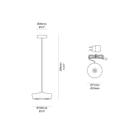 Pack of 6 rechargeable portable battery-powered lamps, Swap model. Portable and rechargeable table lamp with integrated touch control on the base that allows you to turn it on, adjust the light intensity (4-step dimming), and select the color temperature of the light. Equipped with a high degree of protection, it is also suitable for outdoor use, guaranteeing resistance to humidity and atmospheric agents. The new Swap version has a reduced height (29 cm), making it even more practical and versatile. It has an electronic control system that monitors and signals the remaining battery life, optimizing charging cycles to maintain performance over time. The lamp can also be customized with glass, ceramic, or fabric lampshades (sold separately) to suit different styles and environments. The pack of 6 Olivia Swap lamps is an elegant and functional solution for furnishing indoor and outdoor spaces, both domestic and professional.