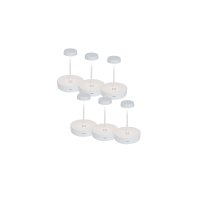 Pack of 6 portable rechargeable battery lamps, Swap Mini model. Portable and rechargeable table lamp, equipped with touch control on the base that allows switching on and adjusting the light intensity. Thanks to its high degree of protection, it is also suitable for outdoor use (except for models with a galvanic finish, for which continuous outdoor use is not recommended) . It has an electronic control system that monitors and indicates the remaining battery life, allowing you to optimize recharging and maintain efficiency over time. Compact, elegant, and functional, the Swap Mini is the ideal solution for stylishly lighting indoor and outdoor spaces, both domestic and professional.
