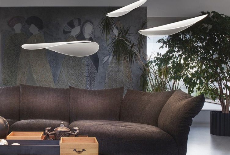 Infatti la luce indiretta viene filtrata e rifratta da ben tre superfici trasparenti che si sovrappongono in parte tra di loro, moltiplicando il gioco di ombre e generando un effetto scenografico sul soffitto magico. E’ poi disponibile in due versioni, singola e doppia e dimmerabile tramite Artemide App, così da controllare in tutta comodità la luce del lampadario.