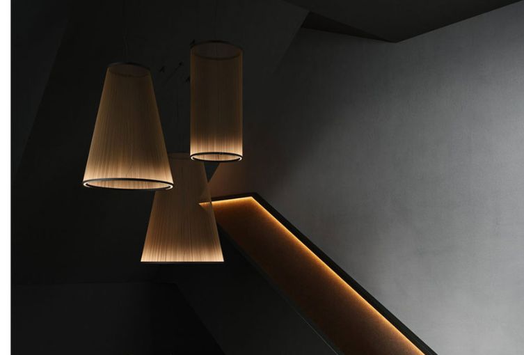 Composta da una serie di fili sottili tesi tra due anelli, la collezione presenta una varietà di sagome coniche e cilindriche, che possono essere combinate insieme in un'affascinante installazione. Coniugando poi una morbida illuminazione verso il basso e una seducente luce rivolta verso l'alto, Array genera uno splendido effetto sfumato che interagisce con il tono e la texture dei fili.