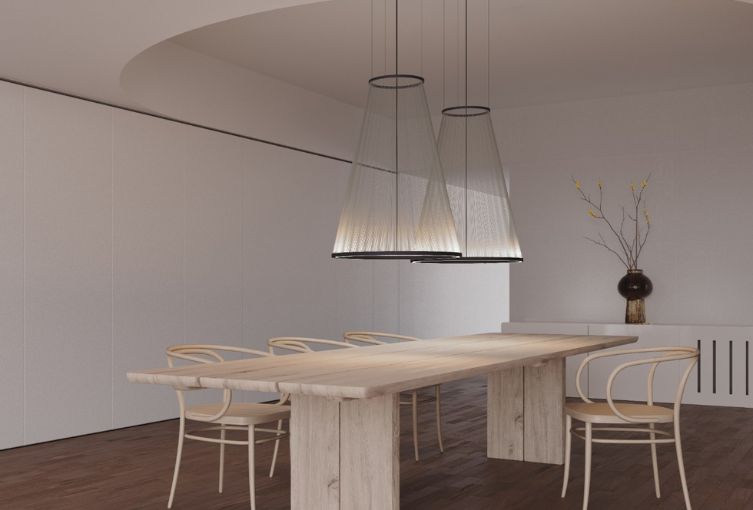 Sala da Pranzo: Una o più lampade Array sospese sopra il tavolo da pranzo possono aggiungere eleganza e funzionalità. La luce chiara e diretta sarà poi perfetta per cene intime o riunioni di famiglia.