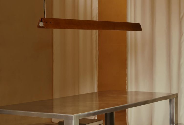 Nella versione originale era in abete di Douglas, mentre la nuova edizione del 2025 utilizza frassino lavorato in Italia, essiccato con cura per garantirne la stabilità e la durata nel tempo. Il design è essenziale ma vivo: i due pannelli in legno, oggi orientabili, permettono di modulare l’apertura e l’intensità della luce, creando atmosfere intime e personalizzabili.
