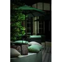 Muse, lampada da terra ip65 con maniglia in cuoio intrecciato bianco e diffusore in acrilico satinato. Disponibile in diverse dimensioni e colori.