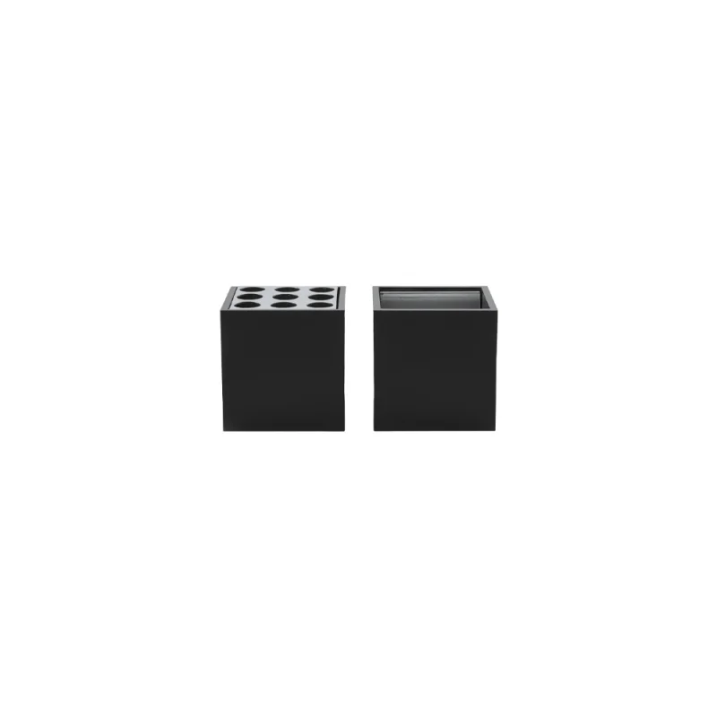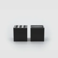 Disegnato da Bruno Munari nel 1958, Maiorca per Danese Milano è un oggetto dal design essenziale e geniale: due elementi parallelepipedi in melammina non infiammabile con interno in alluminio anodizzato fumé che fungono da portamatite e portafermagli. La forma compatta e la finitura raffinata lo rendono perfetto per una scrivania minima o un ambiente dallo stile contemporaneo. Disponibile nei colori bianco e nero, Maiorca è sia un utile strumento organizzativo che un pezzo di design storico italiano.