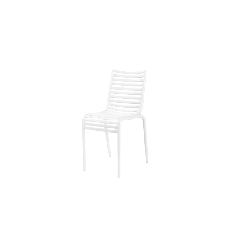 Monoblocco in polipropilene di colore bianco, grigio scuro, cipria o lavanda. Uso interno/esterno. Disponibile nella versione con braccioli o senza braccioli.