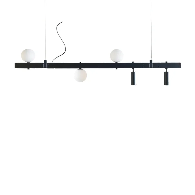Stant di Karman è un sistema modulare a binario per soffitto e parete dal design essenziale e contemporaneo, realizzato in alluminio nero opaco con sfere in vetro satinato.