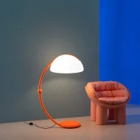 Serpente Terra di Martinelli Luce è una lampada da terra iconica, disegnata da Elio Martinelli nel 1965, che rappresenta una perfetta sintesi tra design organico, funzionalità e innovazione tecnologica. Realizzata con tecniche produttive all’avanguardia per l’epoca, questa lampada è oggi considerata un capolavoro del design italiano Made in Italy. Il suo corpo è composto da un braccio tubolare orientabile che ruota attorno a un perno centrale, permettendo di dirigere la luce diffusa con grande libertà. Il diffusore in metacrilato opal bianco, ottenuto tramite stampaggio termoformato, emette una luce morbida e avvolgente, ideale per creare un’atmosfera calda e accogliente in soggiorni, studi o spazi contract. La forma sinuosa del braccio, che si avvolge armoniosamente attorno alla base rotonda in metallo, conferisce equilibrio, movimento e leggerezza visiva, trasformando la lampada in un oggetto scultoreo di grande eleganza. Ogni dettaglio, dalla curvatura dei bracci alla finitura dei materiali, è il risultato di un approfondito studio tecnico e artigianale condotto da Martinelli Luce. Con la sua estetica fluida e senza tempo, la Serpente Terra continua a rappresentare uno dei simboli più riconoscibili del design moderno, capace di valorizzare qualsiasi ambiente con la sua presenza raffinata e distintiva.