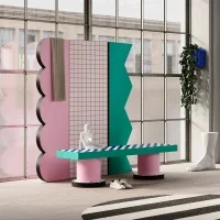 Seletti Superbench è una panca d’ingresso o d’appoggio a strisce blu dal carattere iconico, realizzata in Mdf e Hpl, che riprende le forme e i colori del design radicale italiano degli anni ’60 e ’70. Parte della collezione Superfurniture, la panca celebra l’energia creativa di quell’epoca, reinterpretata attraverso la visione contemporanea del collettivo anonimo di designer e artisti Hello Again. Perfetta in spazi domestici, studi creativi o aree contract.